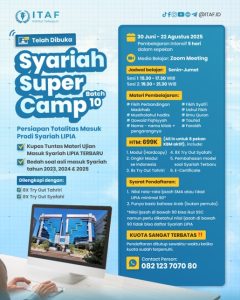 NB: 100% uang kembali apabila lolos di Syariah LIPIA sebelum program bimbel dimulai.